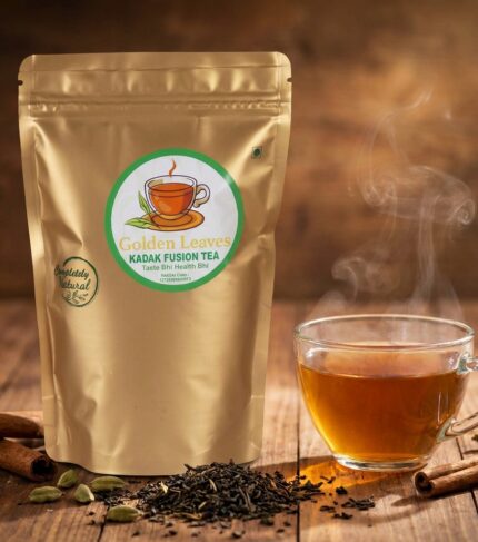 Golden Leaves Kadak Fusion Tea is a premium, all-natural tea designed for those who crave a bold, "Kadak" (strong) chai without compromising on health. Sourced from the finest tea gardens, this fusion blend delivers a robust flavor profile that energizes your senses while staying true to its "Taste Bhi, Health Bhi" promise. Packaged in a premium gold foil stay-fresh pouch, it’s the ultimate daily brew for tea connoisseurs.