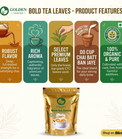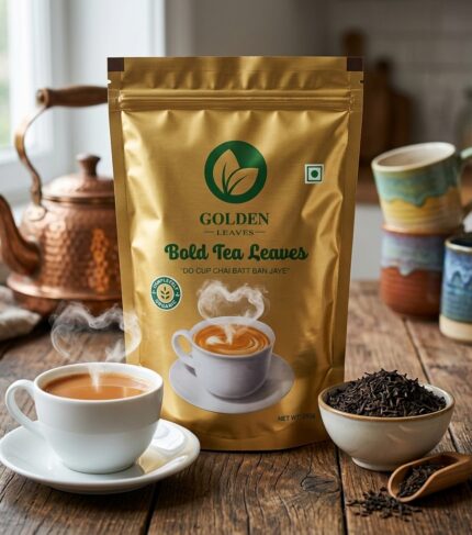 Experience the richness of pure tradition. Our Golden Leaves Bold Tea Leaves are crafted for those who crave a strong, invigorating start to their day. Sourced from organic gardens, these bold leaves deliver a deep amber hue and a robust flavor profile that stays true to our motto: "Do Cup Chai Batt Ban Jaye."